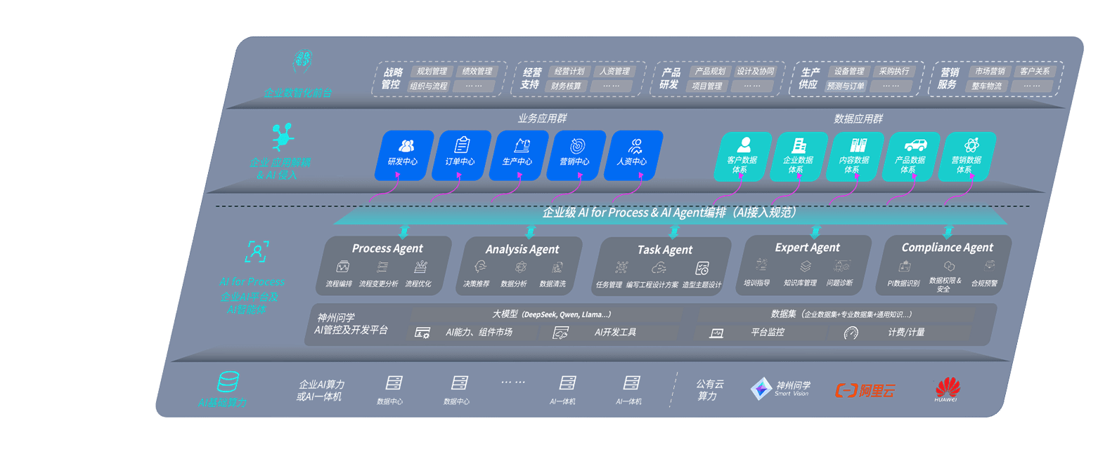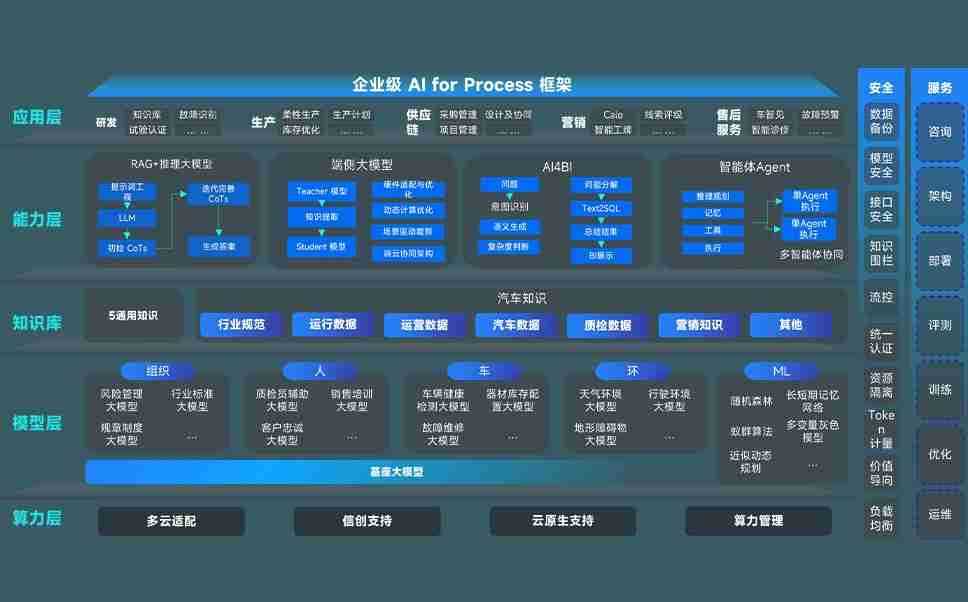 端到端的一站式AI工作空间深度融合了从企业战略规划到日常经营的全流程业务板块,,定向解决车企内部领域多、、、、部门多、、链条长、、、、场景碎片化等难题,,,支持车企快速构建以AI为核心的生产力写作体系,,实现任务执行与AI能力的无缝集成与交互